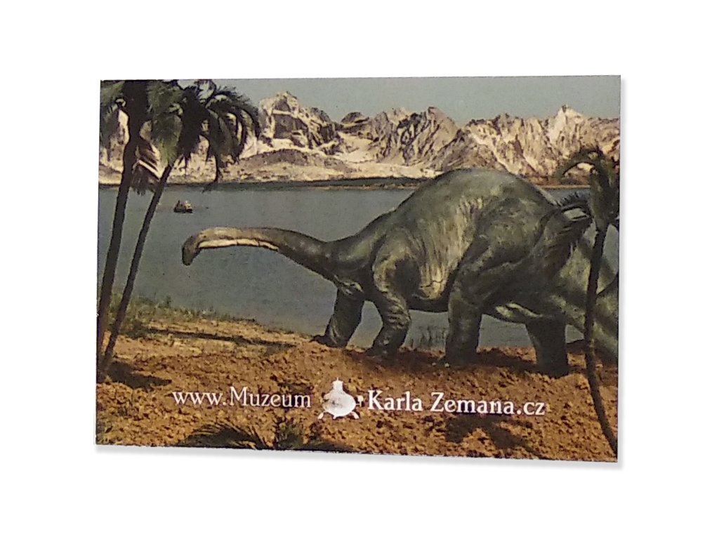 The magnet with a motif of a Brontosaurus from the film The Jurney to the Beginning of the Time.